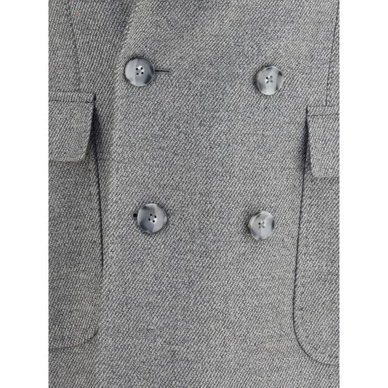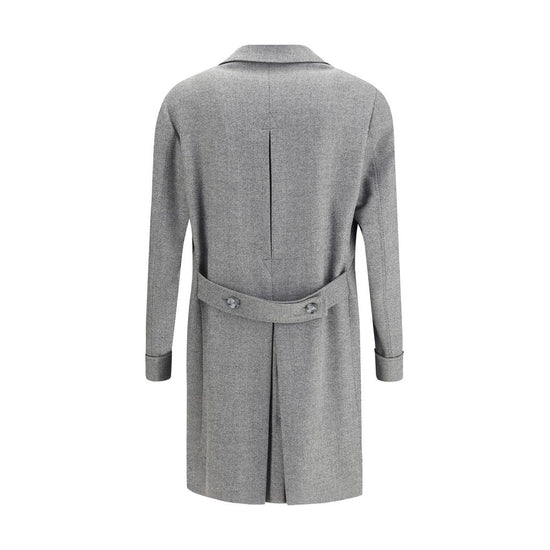 The Gi Capri Coat is a refined double-breasted design crafted from pure virgin wool, featuring classic lapels and two front flap pockets. A fabric band on the back provides a distinctive and modern touch, elevating this timeless piece with a note of understated sophistication.