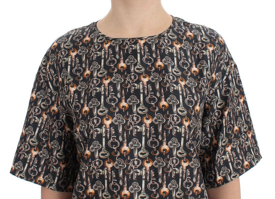 Gorgeous brand new with tags, 100% Authentic DOLCE & GABBANA gray silk blouse top with medieval Keys print. This item comes from the exclusive MainLine Dolce & Gabbana Collection.