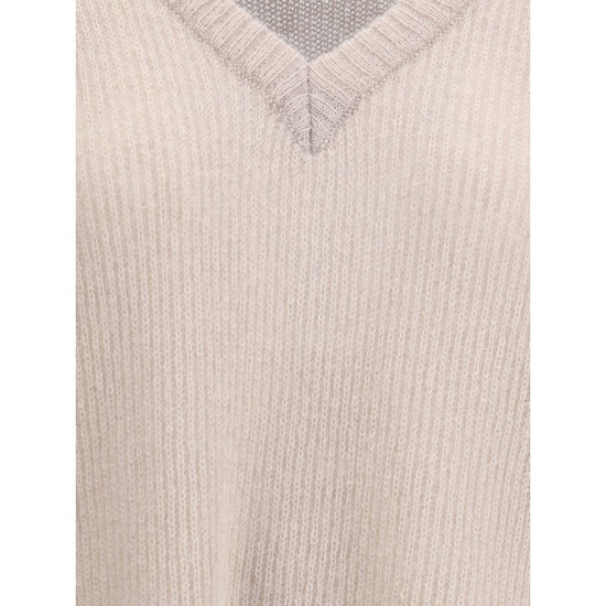 The mohair wool Sweater Giselle by Cruna embodies a refined balance of comfort and sophistication. Crafted in English rib knit, it features a soft oversized silhouette enhanced by a deep V-neckline and subtly padded shoulders. The mohair and wool blend provides natural warmth and lightness, ensuring effortless elegance for the colder season. A versatile piece designed to elevate everyday style with understated femininity.