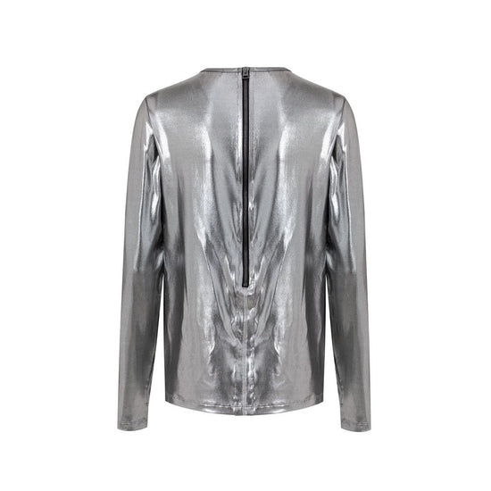 Long sleeves with a relaxed fit. Round neck and straight hem. Full-length back zip detail with metal zip puller. Heat-sealed trims for a smooth, even finish. Composition: 95% viscose, 5% elastane.
