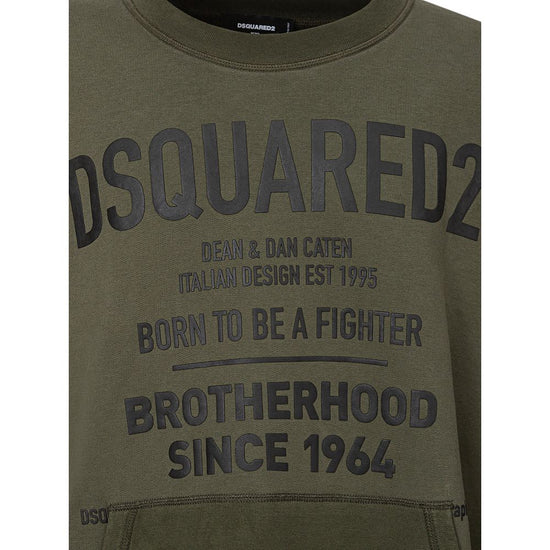 Dsquared2 Logo Oversized Sweatshirt. Made of green cotton with contrasting black rubberized logo and lettering on front. Front pocket. Over fit. Composition: 100% Cotton. Inner Sku: 24SET08