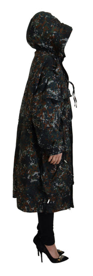 Gorgeous, 100% Authentic DSQUARED2 Goth camouflage-print parka, featuring olive green, stretch-cotton, camouflage print, drawstring hood, front press-stud fastening, long sleeves, buttoned cuffs, multiple cargo pockets, drawstring hem.