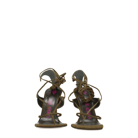 The product with MPN S601L007081 and code F76069 suede in green is a flip flops designed by The Attico.