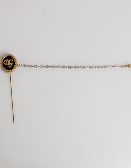 Gorgeous brand new, 100% Authentic Dolce & Gabbana men’s brooch lapel pin accessory. Features the iconic DG logo in a polished gold-tone finish, connected with an elegant chain for a bold and sophisticated statement. Designed to elevate blazers, coats, or formalwear with a touch of luxury and unmistakable branding.