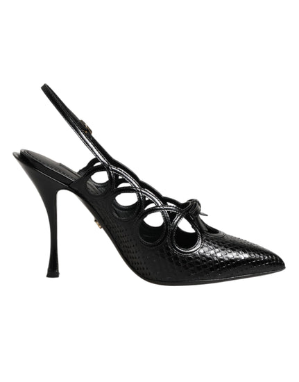 slingback heels are a timeless expression of elegance and craftsmanship. Made from premium black leather, they feature a pointed toe and a sleek high stiletto heel that elongates the leg. The adjustable slingback strap ensures a secure and comfortable fit. Perfect for both formal and evening occasions, these heels embody classic Italian sophistication.