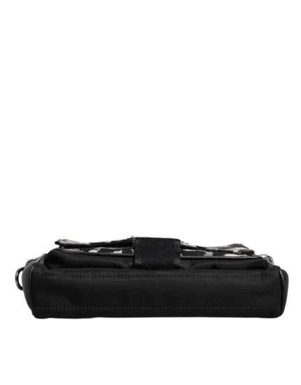 Gorgeous brand new, 100% Authentic Dolce & Gabbana black/multicolour leather trim patterned jacquard logo plaque bag with decorative buckle, detail top zip fastening, front flap pocket, adjustable detachable shoulder strap and main compartment