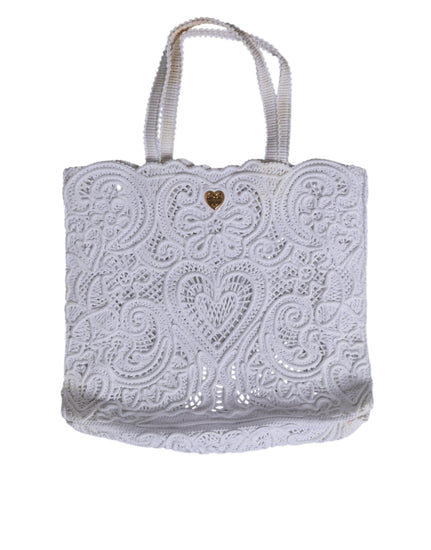 Gorgeous brand new, 100% Authentic Dolce & Gabbana Beatrice tote bag is a must-have for your summer portfolio. Characterised by its fine cordonetto lace profile – a traditional Sicilain fabric – the bold accessory features the Maisons signature heart motif both within the lace and the hardware.