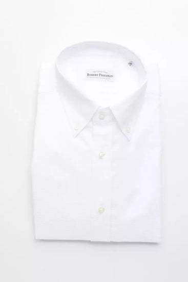 Elevate your wardrobe with the timeless sophistication of a Robert Friedman piece. Presenting the perfect harmony of classic design and modern flair, this Button Down Regular Shirt is as versatile as it is stylish. Crafted from fine cotton, it promises comfort and durability, making it a staple for any discerning gentleman’s collection. Adorned in crisp white, it effortlessly pairs with every ensemble, ensuring you make a statement in any setting.