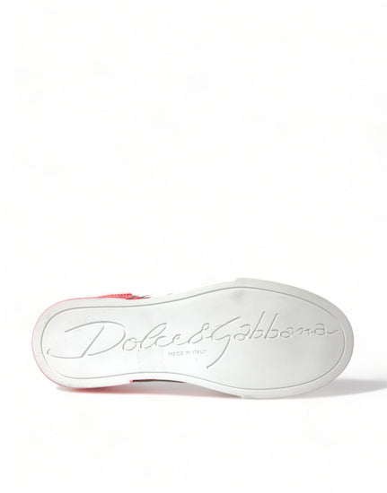 Gorgeous brand new with tags, 100% Authentic Dolce & Gabbana White and red portofino nappa sneakers with black logo print features a lace up closure.