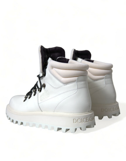 Gorgeous brand new with tags, 100% Authentic Dolce & Gabbana white Vulcano trekking boots and crafted from leather and feature a round toe, a ridged rubber sole, a lace-up front fastening, an ankle length and side and rear logo detailing.