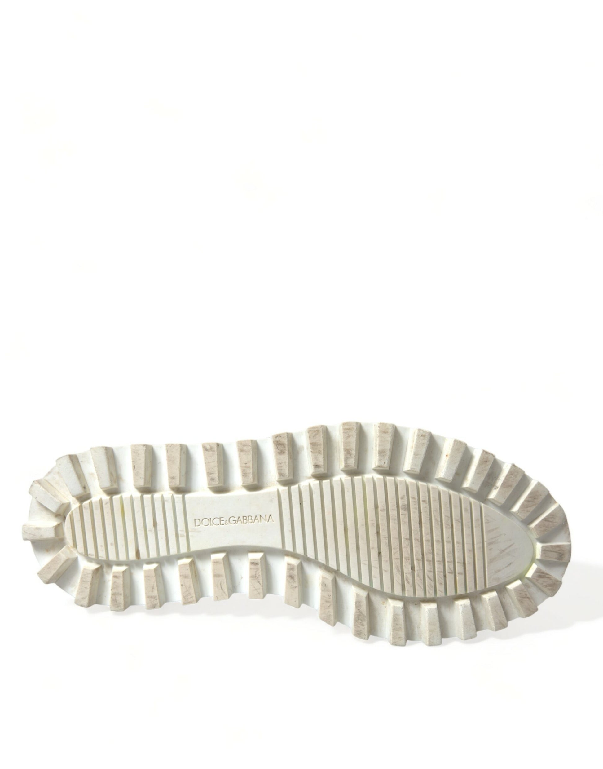 Gorgeous preowned with tags, 100% Authentic Dolce & Gabbana white Vulcano trekking boots and crafted from leather and feature a round toe, a ridged rubber sole, a lace-up front fastening, an ankle length and side and rear logo detailing.
